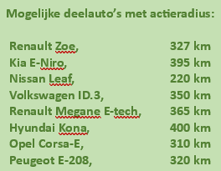 De groep gebruikers, 15+, bepalen zelf een electrisch auto naar keuze.